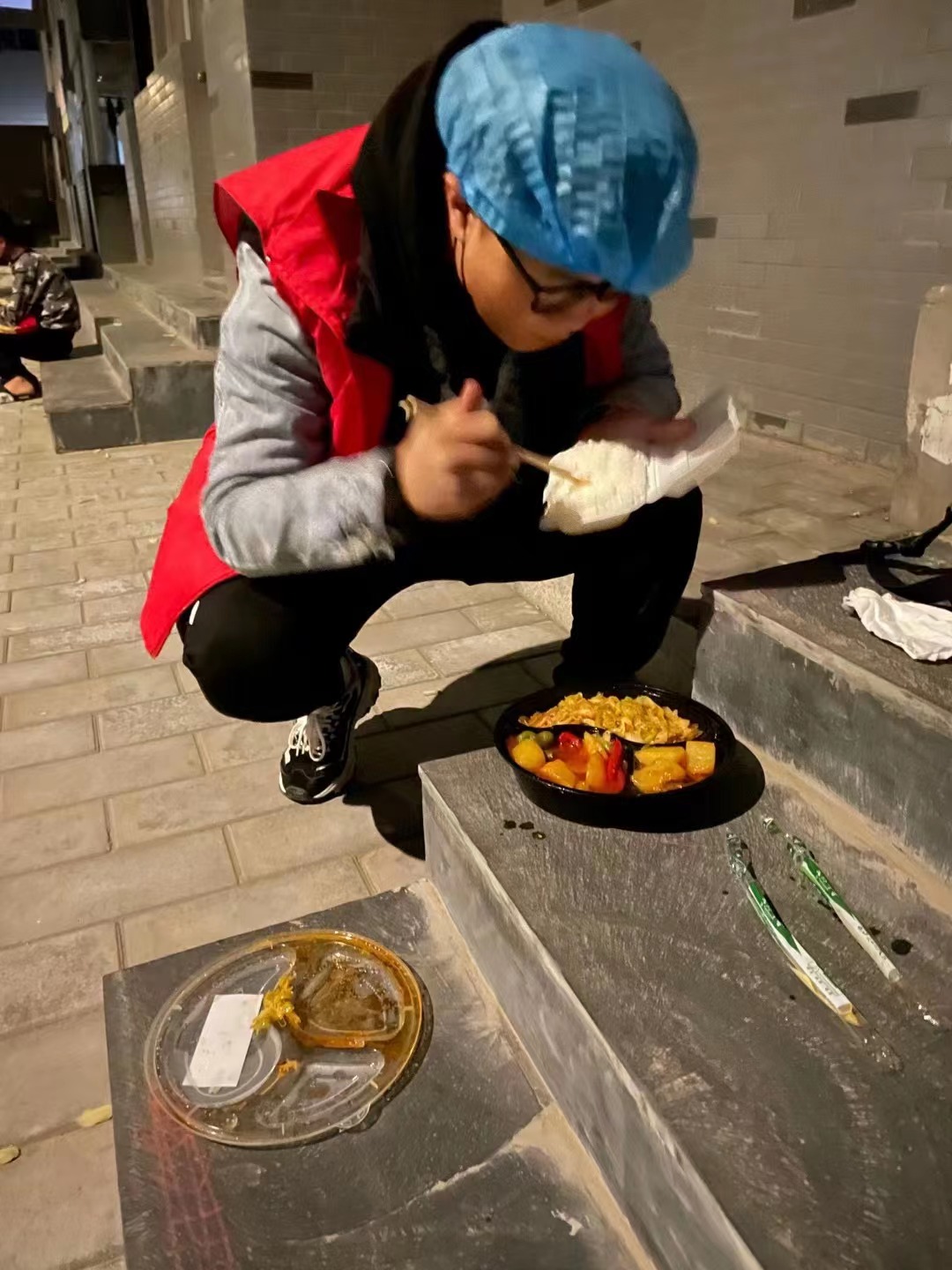 “現場需要做的工作非常多,有些物資還在路上,有的居民還不知道怎么檢測,還有一些老人沒有手機等等。”李丹陽說。和他一起做志愿服務的,還有他的妻子寇淑女。“她負責采集樣本、做記錄等工作。為了少上廁所,她一整個白天沒吃沒喝,直到晚上才吃了幾口米飯,幾乎沒怎么喝水。