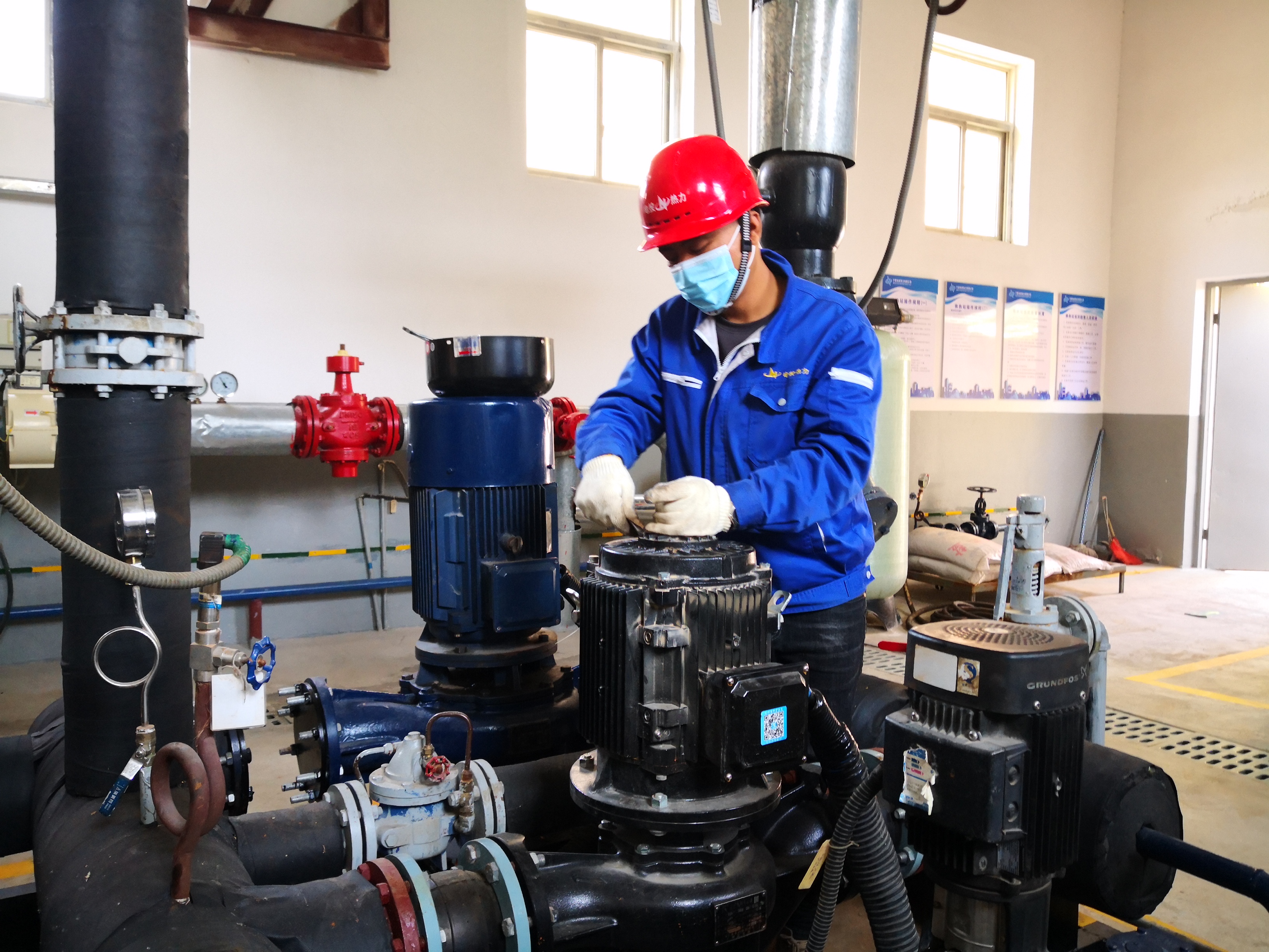 李豫寧每天穿著厚重的防護服穿梭在兩個換熱站之間,身上背著一包大大小小的檢修工具。“在高溫下尤其是穿著防護服工作,還沒干幾下就已經汗流浹背,一次檢修下來感覺要脫水了。”李豫寧說,過去需要幾個人互相協作才能完成的檢修任務,現在一個人干,連個遞扳手的人都沒有,更是加大了維修的難度。